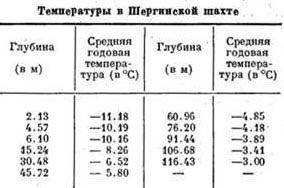Шергин продолжил свою работу уже с научной целью, чтобы определить положение нижней границы мерзлого грунта. Работы проводились зимой, чтобы обеспечить хорошую вентиляцию в шахте за счет температурной инверсии. К 1837 году глубина шахты достигла 116 м. В 1844 г., во время экспедиции Миддендорфа в Шергинской скважине были установлены термометры в небольших (около 2 м) горизонтальных ответвлениях на различных глубинах, и организованы периодические измерения, технология которых показана на рисунке.
